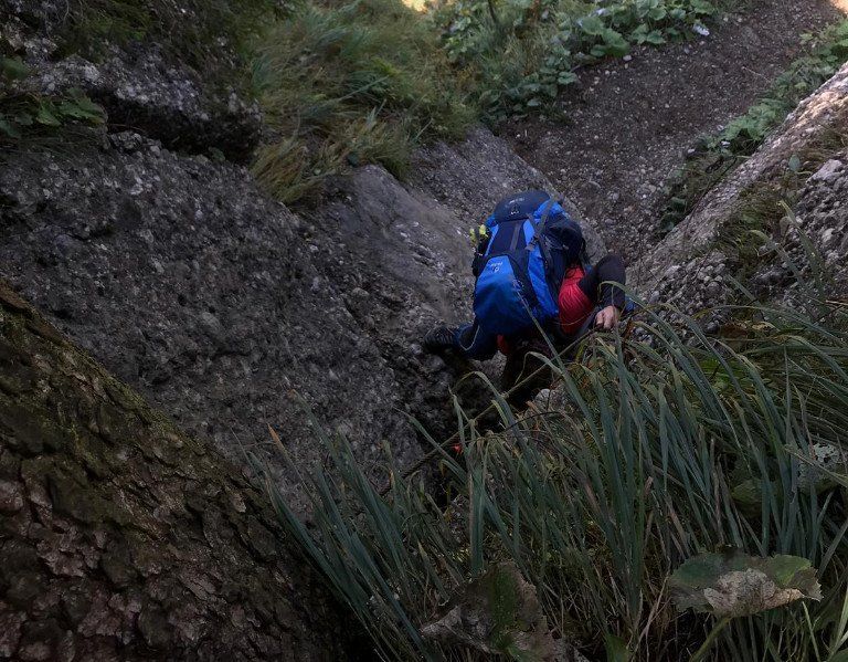 Kraxeleinlage und lassen dafür den rutschigen Waldpfad links liegen. Mein