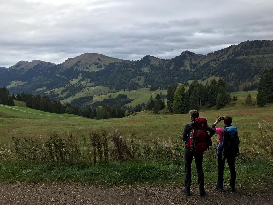 Wir verlassen die Alpe Hörmoos und marschieren teilweise über den Oberstaufener